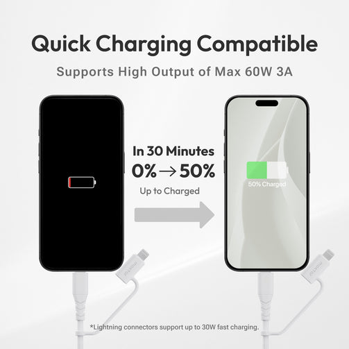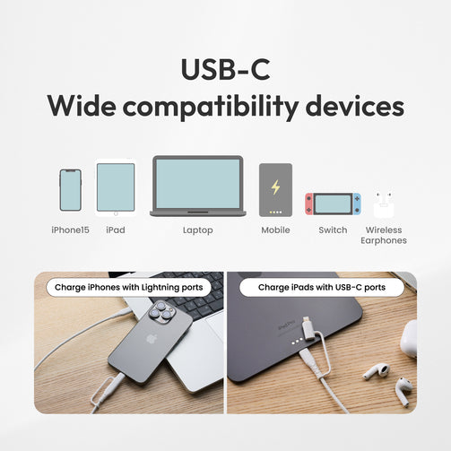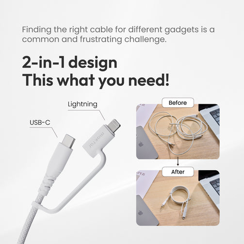 - Versatile Use: Comes as a dual USB-C to Lightning and USB-C to USB-C cable in a single solution for reducing cable clutter